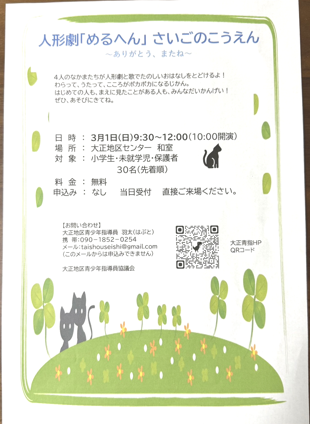 人形劇「めるへん」さいごのこうえん のお知らせ
